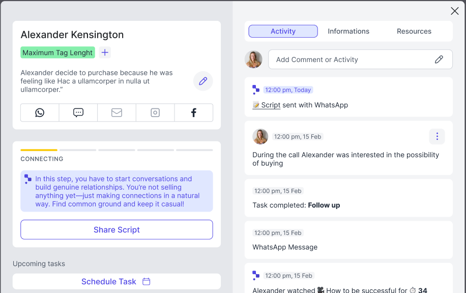 Das Notizfeld befindet sich genau dort, wo Sie es brauchen, und macht es super einfach, wichtige Informationen während der Arbeit mit Ihren Leads zu notieren.
